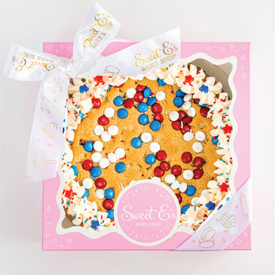 We’ve also made something for cookie lovers - our 4th of July Cookie Cake is a giant, chewy cookie topped with vibrant red, white, and blue sprinkles. This huge cookie is perfect to share with the entire family while watching the fireworks light up the night sky.