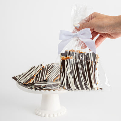 We’ve transformed the plain and simple matzo cracker into a delectable treat! We’ve taken the crunchy matzo cracker to the next level with our Chocolate Caramel Matzo Crunch - four matzo sheets broken down into smaller, snackable pieces, and generously coated with rich caramel, dark chocolate, and a drizzle of premium white chocolate. It's like a flavor explosion with every bite!