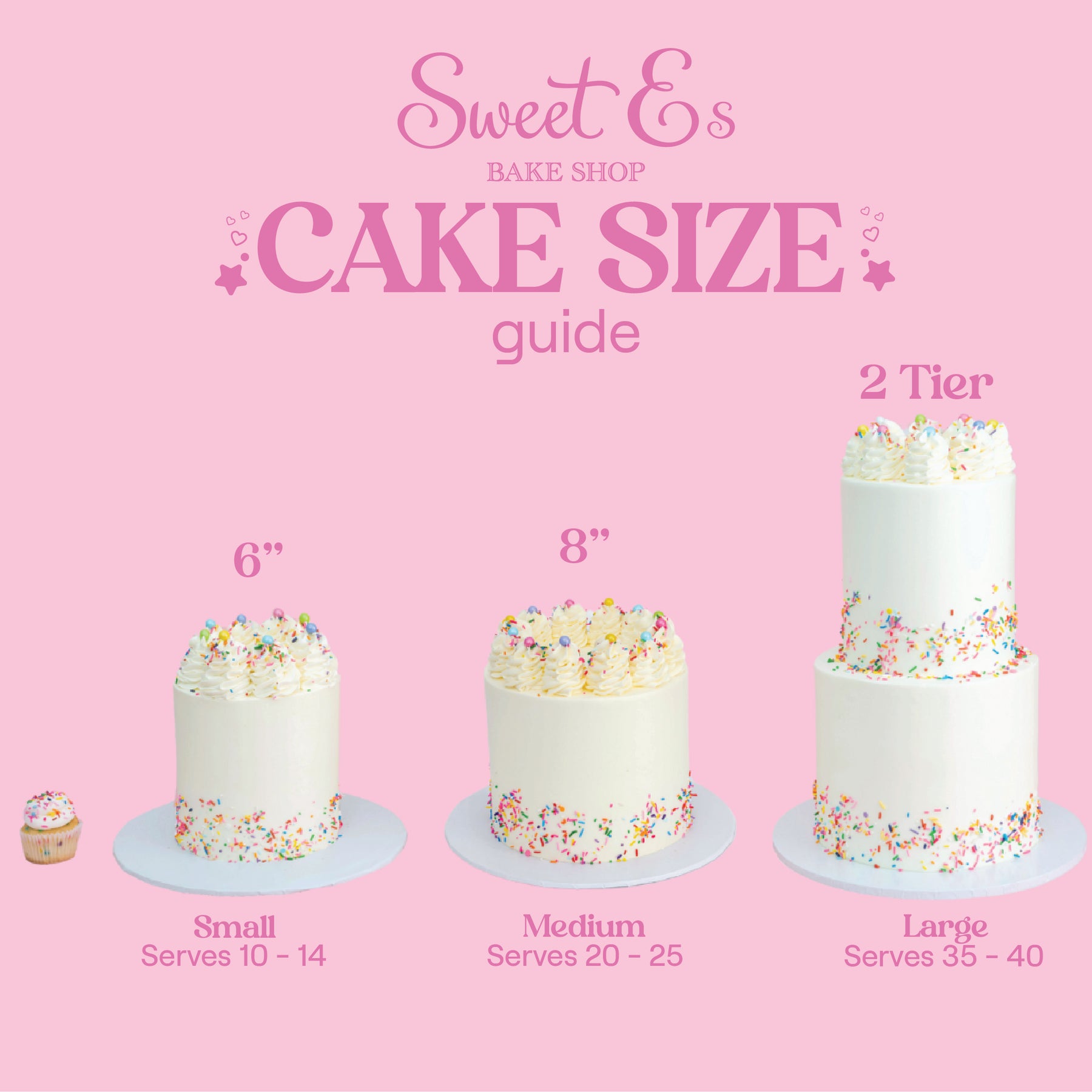Available in three sizes to serve up to 40 people, this delicious, made-from-scratch cake can be made in any of our nine signature cake flavors and is frosted in our classic white buttercream, then topped with a border frosting around the top in a color of your choice.
