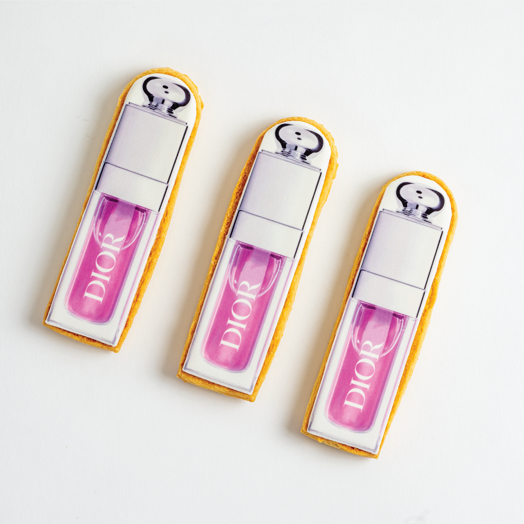 Make your dessert table as chic as your makeup bag with our custom shape cookie designed to mimic the iconic Dior beauty lip gloss. Each cookie is handcrafted to perfectly capture the sleek silhouette and elegant details of this luxury favorite. Ideal for brand events, influencer mailers, or beauty-themed parties, these cookies combine couture style with delicious flavor. Personalize the colors, finishes, or add your logo to make them uniquely yours.