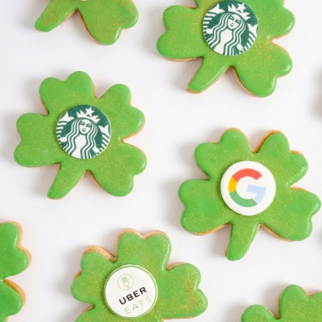 With a minimum order of 6 logo cookies, you have the flexibility to tailor your gift to suit your needs. Choose up to 6 unique images to adorn your cookies and make each one a personalized masterpiece that reflects your company's style and personality. Whether you're celebrating St. Patrick's Day in the office or sending treats to remote team members, our custom logo cookies are sure to make a memorable impression.